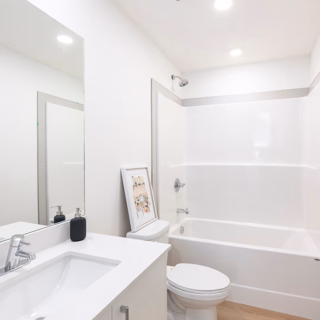 Modern finishes, deep soaking tubs, and sleek fixtures designed for relaxation